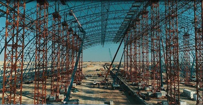 The main truss structure of the dry coal shed at Coal Storage Yard 1 of the Dubai Hassyan Project was capped ahead of schedule