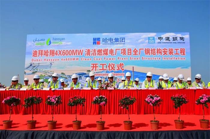 On October 23, 2017, the commencement ceremony of the steel structure installation of Dubai’s Hassyan 4x600MW Clean Coal-fired Project contracted by HEI was held. Leaders such as chairman of HEI Mr. Guo Yu, General Manager of the North Region of China Construction Steel Structure Co., Ltd(CCSSC). Mr. Yan Rengjing and Executive Managing Director of Hassyan Energy Corporation Mr. Patxi Saez attended the ceremony and delivered their speeches.