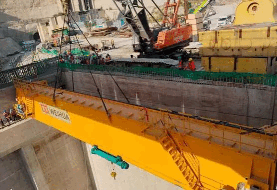 The main powerhouse is equipped with two overhead cranes, each with a lifting capacity of 650 tons. Each main girder measures 24.5 meters in length and weighs 75 tons, making it a piece of large-scale heavy lifting equipment. Despite challenges such as steep mountain roads and limited transfer space, the project team actively implemented the “Thunder Action” campaign of Harbin Electric Corporation and HEI on production safety. During the hoisting process, the team carried out meticulous planning and coordination, made well-organized construction arrangements, and completed safety preparations in advance for heavy-load transportation and high-altitude operations. Working closely with the crane manufacturer and the supervision unit, the team conducted a rigorous review of the hoisting plan, ensuring that quality and safety requirements were met at every stage of the lifting operation. As a result, the installation of the first main girder of the No. 1 powerhouse overhead crane was successfully completed, earning high praise from both the owner and the supervision team. At present, the project team is actively proceeding with the installation of the second main girder and the assembly of the other 650-ton overhead crane, laying a solid foundation for subsequent electromechanical works.