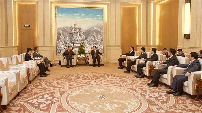 Секретарь парткома провинции Хэйлунцзяна г-н Wang Xiankui (четвертое место слева) встретился с председателем правления саудовской корпорации «ACWA» г-ном Mohammed A. Abunayyan (третье место слева)