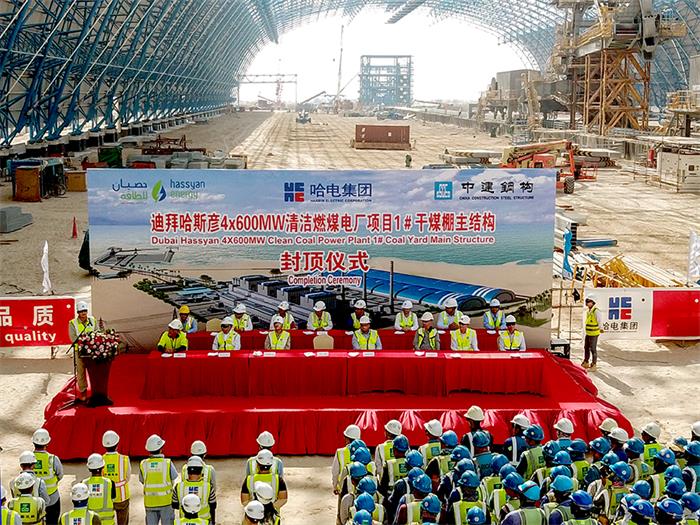 El 22 de mayo a las 14 horas, hora local de Dubái, se completó con 10 días de adelanto un hito clave en el proyecto de la central eléctrica de carbón limpio de 4x600 MW de Hassyan (Dubái): el techado de la estructura principal de celosía de acero empleada en el domo para el patio de almacenamiento de carbón n.º 1. En el sitio de obra se celebró la ceremonia de instalación del techo, en la que participaron representantes de HEI, de la empresa contratista Hassyan Energy, del socio inversionista del proyecto ACWA Power, de la empresa GE así como de otras empresas participantes en la construcción.